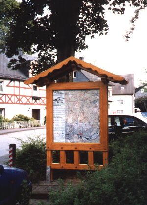 Diese Informationstafel, die nicht nur Einblick in die 35 Kilometer des Wegenetzes der Abteilung gibt, zeigt dem Ortsunkundigen die Richtung zum nur 5 Minuten Fußweg entfernten - im Schatten der Kirche gelegenen Heimatmuseum. In nur 20 Minuten Fußweg erreichen Sie das Jugend- und Wanderheim der Abteilung in Irlenhecken. Von hier sind sie in einer Stunde auf dem Kindelsberg, dem höchsten Berg der Umgebung, mit seinem Aussichtsturm, dem Wahrzeichen der Stadt Kreuztal. Vom Dorfplatz in Ferndorf, dem Standplatz der Wegetafel, sind Sie nach einer Wanderzeit von ca. 1 St. in dem geschichtsträchtigen Bergmansdorf Müsen, das schon von Kaiser und Königen besucht wurde. Aber auch das Warmwasserfreibad im schönen Mattenbachtal bei Buschhütten erreichen Sie in kurzer Zeit. Ferndorf bietet Möglichkeiten für alle Jahrgänge, kommen Sie und fühlen Sie sich wie zu Hause.